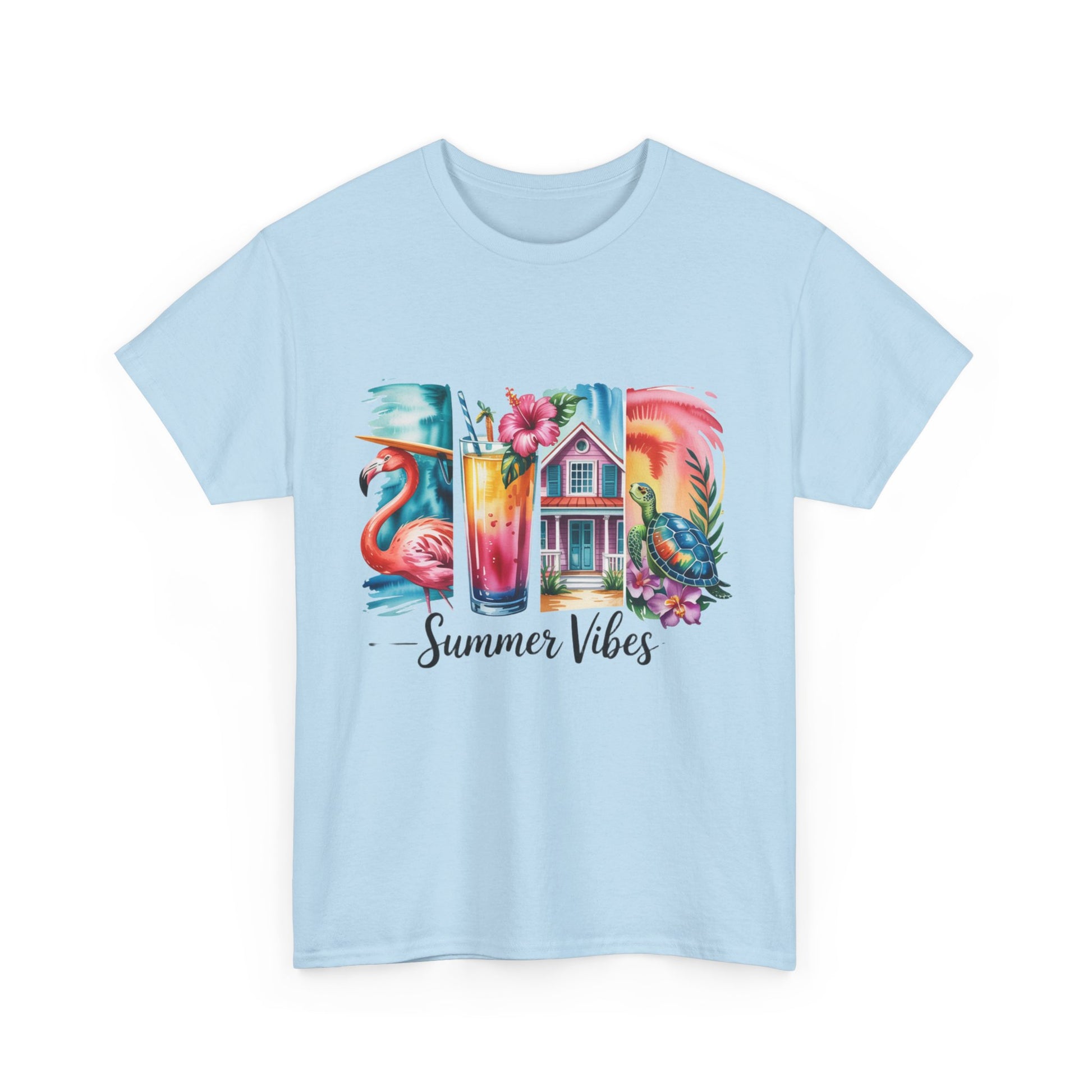 Embrace the sunny warmth of summer with this vibrant Cotton Tee, designed for ultimate comfort and effortless style. The cheerful 'Summer Vibes' graphic captures the essence of balmy days and laid-back get-togethers. Perfect for beach outings, picnics, or just relaxing at home, this tee effortlessly fits into your summer wardrobe. Ideal for anyone who appreciates a relaxed, casual look, it's a great gift for friends and family who love to celebrate summer. This shirt is perfect for vacations, summer festivals, or as a light layer on cooler evenings. Celebrate the season with style!